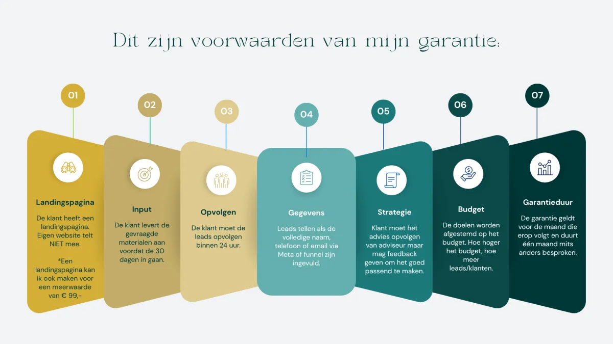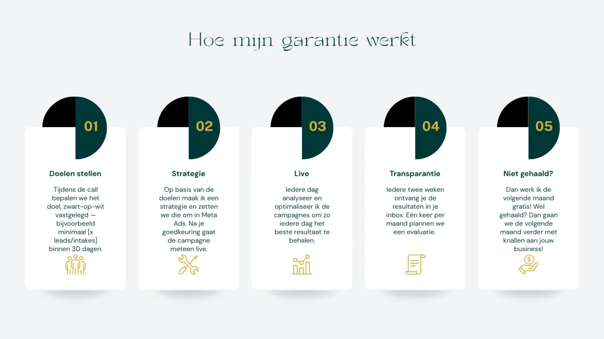 Daarom werk ik met een simpele, transparante garantie: behaal je geen resultaat, dan werk ik de volgende maand gratis door.